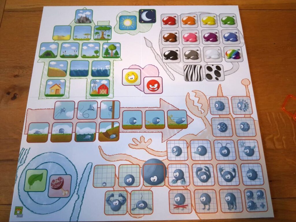 The kids look at an animal card and then start to place square clue markers in the various zones of the board to describe the animal. For a tiger they might provide clues such as ‘orange’, ‘meat eater’, ‘jungle’, ‘four legs’ and ‘claws’. If you guess correctly then great, next card. Otherwise, you can keep guessing until you give up and then it’s on to the next card anyway. Work your way through 12 cards and at the end compare how many you got right against the feline scale provided in the rules. Being a stubborn family, we refuse to pass on any and therefore are always ‘legendary lions’.