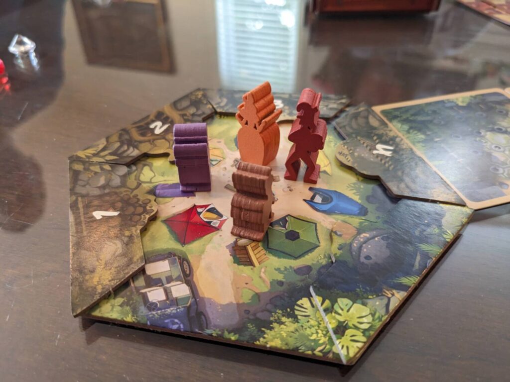 This is a possibility based on the game’s rules. One reason this happened is a kink in the way gems are distributed, because gems must be handed out evenly to players still in the jungle. If a treasure card shows, say, nine gems in a five-player game, each player gets one gem placed in front of them, and the remaining four gems sit on that treasure card until at least one player decides to leave the jungle. But if this is the first card added to that round’s expedition, players in my games have always wanted to collect more gems…no one wants to leave the map with such a small amount of treasure.