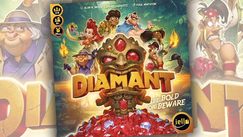 During our meeting with IELLO at SPIEL 2024, the marketing rep for IELLO handed me a copy of a game called Diamant…at first, a game title I did not recognize. When I finally got Diamant to the table, I started reading the rules and thought “man, this sounds a LOT like that game I played with the kids a few years ago!” Well, friends, Diamant IS Incan Gold, and vice versa. Depending on the region, the name of this property is typically one or the other, based on the original design by Alan R. Moon (Ticket to Ride) and Bruno Faidutti (Citadels).