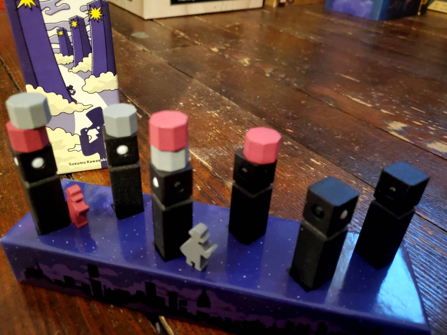 For a greater challenge, players can begin with one tower in the bag, a blind option for player markers should early deductive attempts prove suggestive of the bag’s contents. I barely know what’s going on with all six towers in plain view, so I’ve yet to try this iteration—but I won’t rule it out.