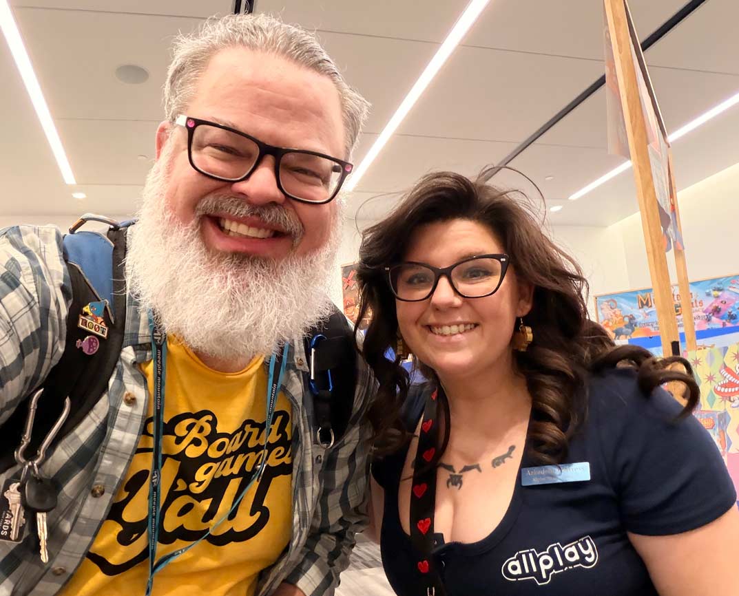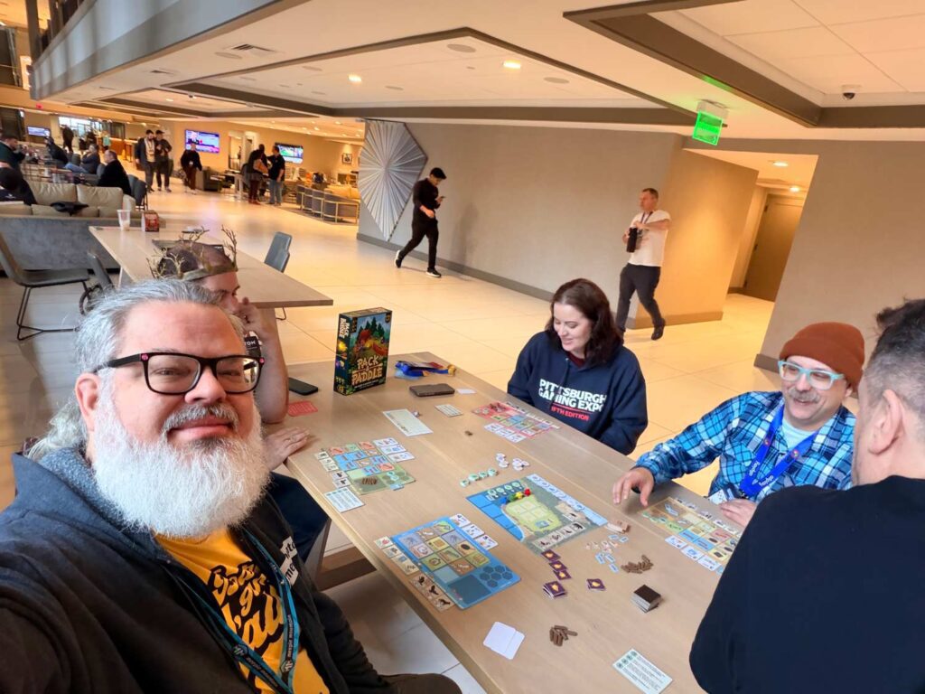 And then into the vendor hall! While it’s not as big as Gen Con, there were still hundreds of booths and 176,000 square feet of space. Due to a scheduling mishap during GAMA Expo 2025, I wasn’t able to walk the vendor hall at all. So I committed to making up for lost time this year. I walked the entire vendor hall on Tuesday afternoon, which absolutely wrecked my feet. But I saw loads of great people, and upcoming games.