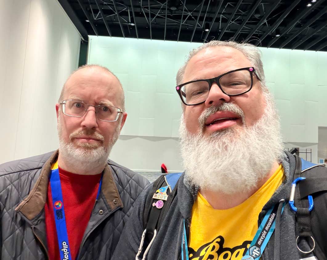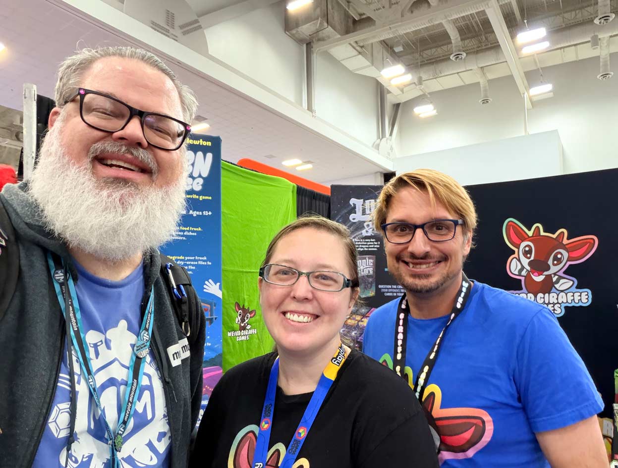 TL;DR – loads of name recognition for Meeple Mountain, and even specific team members. Small box card games are the hotness right now—almost every publisher has one or two, and everyone I pointed that out to commented that it’s in response to the U.S. tariffs. And of course, like every year, friendliness and camaraderie was on high display.
