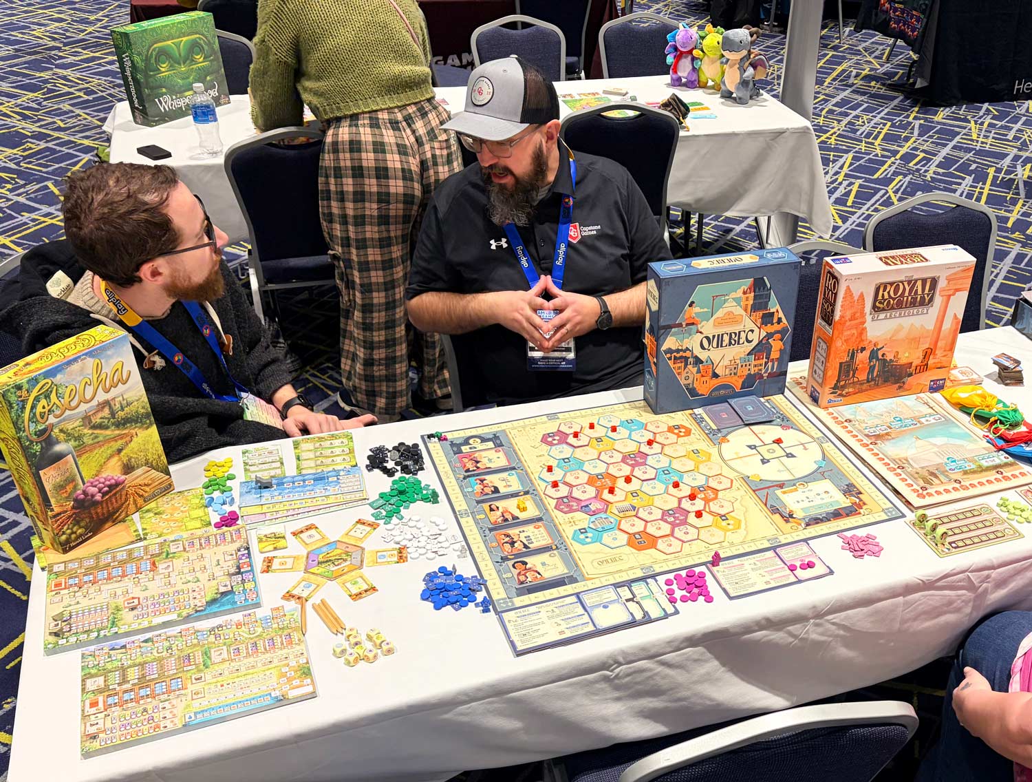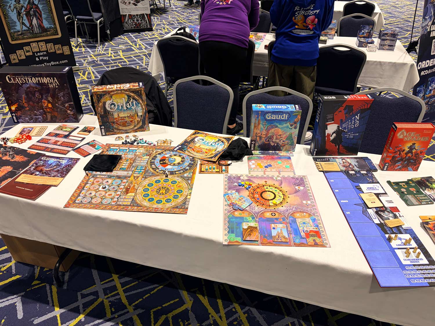 But before I headed into the vendor hall, I took time to attend a lunch with the crew from Hachette Games, where I found some nifty new titles: Symbiosis, Leaf It, and Canal Houses.