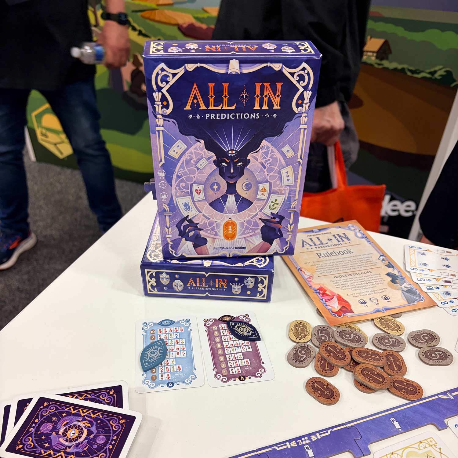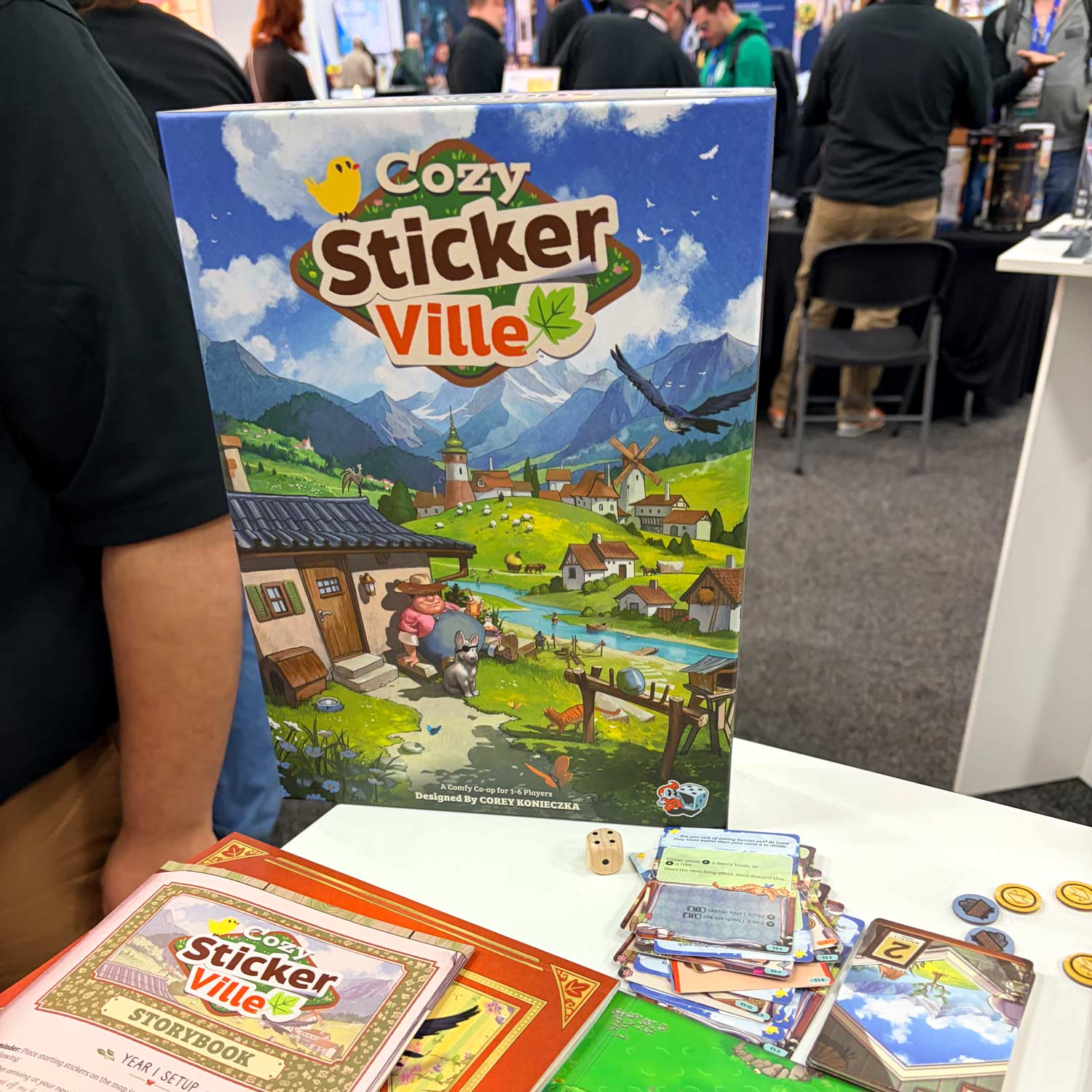 I spent much of my remaining time going through the Asmodee booth and looking over their upcoming releases. If you like poker and Balatro, then All In: Predictions should be something you keep your eyes on. And from social media, people are raving about Cozy Stickerville, a light cooperative and town-building stickering game—there really is something for everyone.