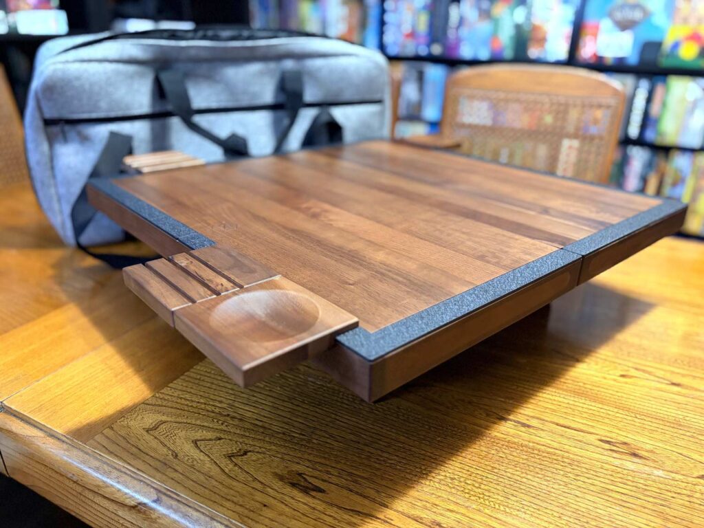 Finally, I was fortunate enough to pick up a Relic Gaming Table that a member of our team had been asking about. I was given a tour of the features, and this thing is stunningly well engineered. The unit I brought back is made from solid walnut and is held together with super strong magnets. It’s meant to be used to elevate a gaming surface so that you can also use your primary table for other things. This would be perfect for eating and gaming at the same time, for anyone playing RPGs where you need space to spread out your materials, or anyone who loves gorgeous and useful furniture.