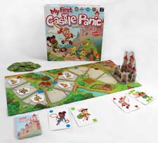 My First Castle Panic is a cooperative matching game for preschoolers. In the game, monsters race out of the woods toward the Castle. Players need to catch all the monsters before they smash the Castle flat. Brave defenders are used to match the color and shape of the space where a monster is to catch it. The monsters move closer to the Castle every turn, and more monsters keep coming! Easily a favorite of many kids.