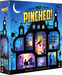 Try to bluff and outsmart other burglars in Pinched! – a new set collection game by David Gordon and Jonathan Gilmour-Long for 2 to 5 players. You become “The Mastermind”, planning the perfect heist. In the meantime, the other burglars try to guess where the break-in will be… Who will take the most loot?