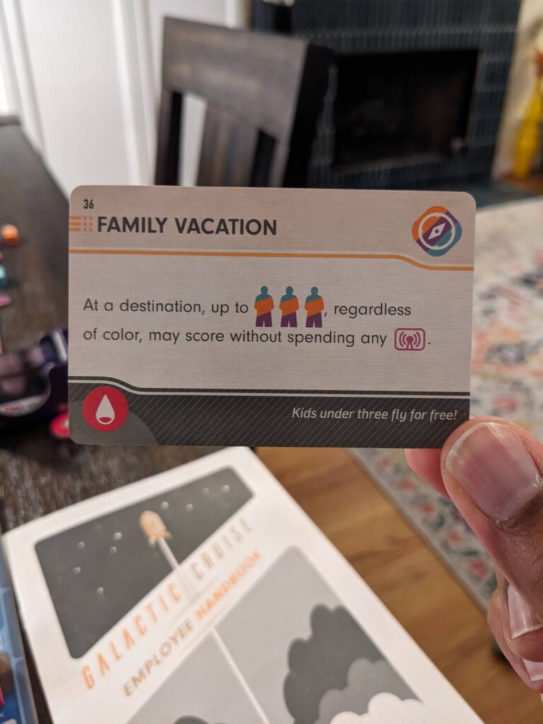 I don’t think this is necessarily a knock on the game. It is important to understand that Galactic Cruise is a very, very forgiving game. In that second game, one player changed strategies halfway through the game and still came up just 10 points short of a victory.