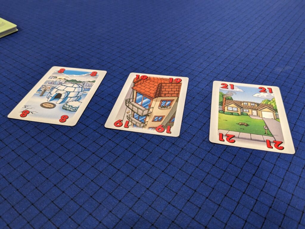 It was always tricky for me to select games that might fit best for a general audience that weren’t games like UNO, so I brought Railroad Ink: Deep Blue Edition because it fit six players and was so easy to teach. The night’s host brought a few titles, including For Sale, an auction game I had heard of but no one had actually brought to a game night until this one.