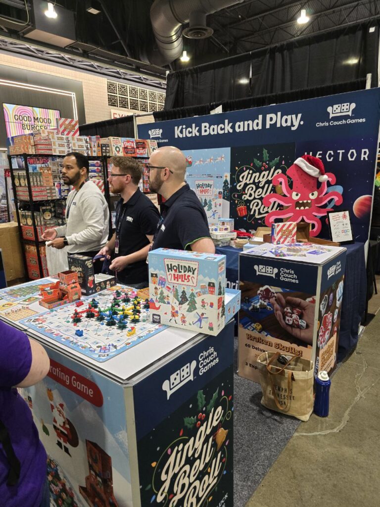 One of the most popular booths this year was Chris Couch Games. It was their first time at PAX Unplugged, and they weren’t sure how their games would be received. Their major title, Holiday Hills, along with the smaller Jingle Roll, was an easy draw thanks to the proximity of the holidays. On Sunday, the holiday cheer went even further with a surprise visit from Santa Claus, who handed out presents to everyone presumably on the nice list.