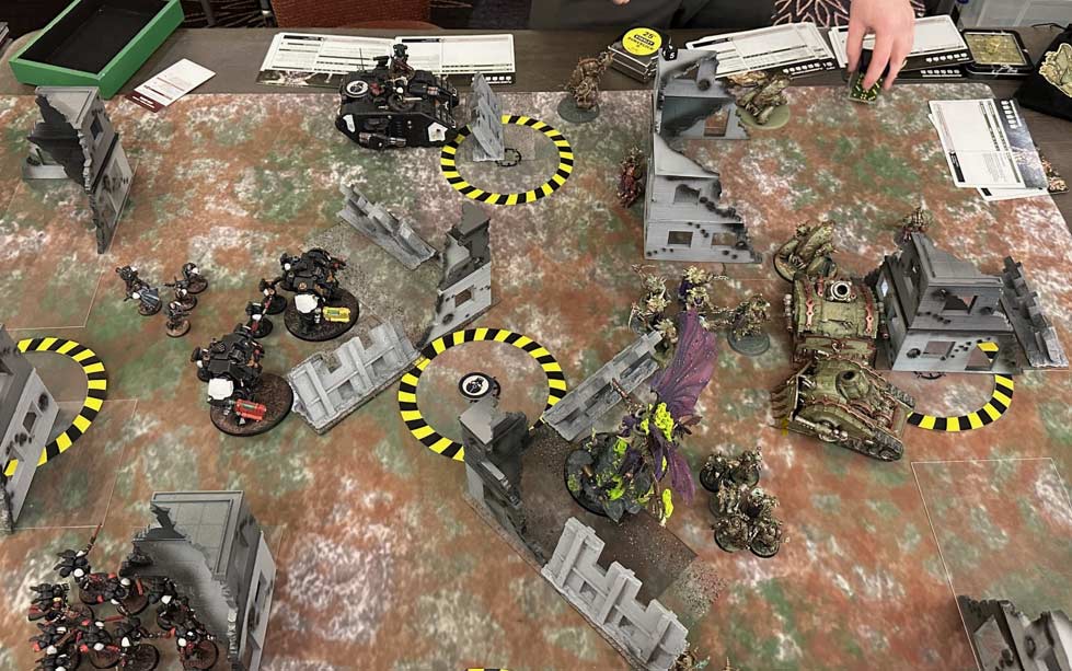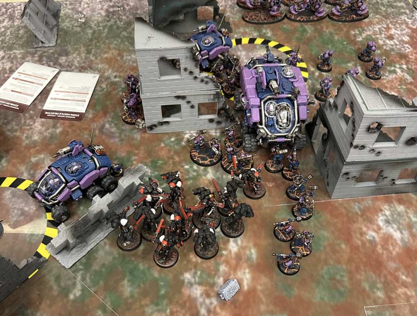 - Secondary mission cards are drawn: Each turn players draw secondary missions that require units to complete a tactical action to score victory points.
