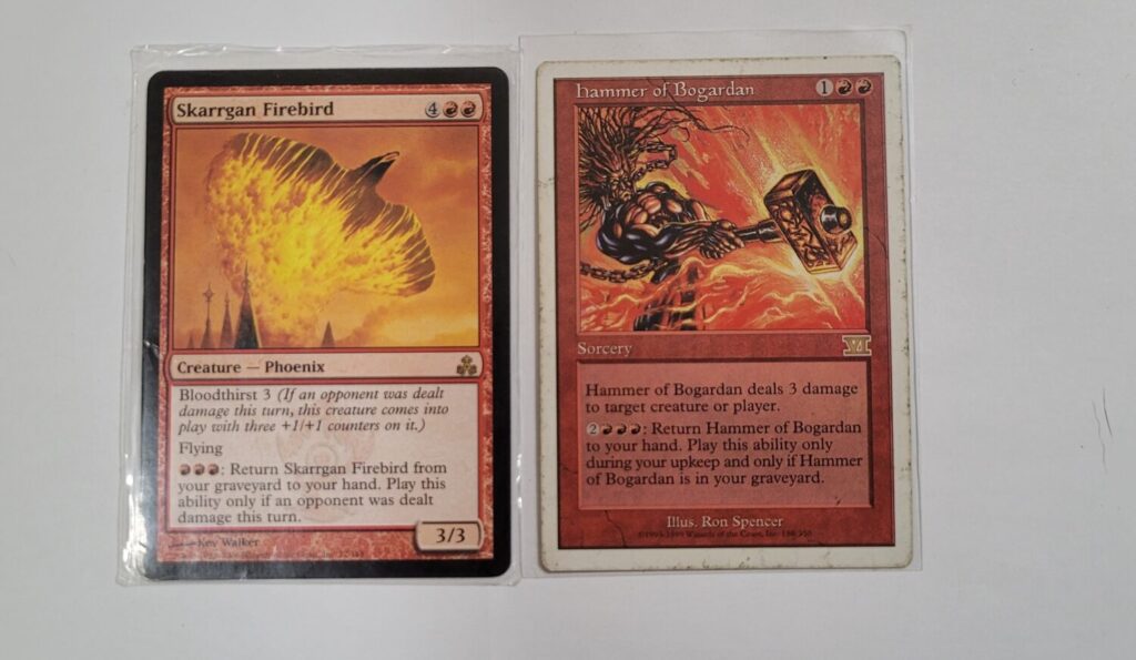 One is a 3/3 creature with flying, and the other is a direct damage spell. While the two may seem dissimilar at first glance, they share one special feature that makes them particularly appealing to me for the purposes of this deck: graveyard recursion. Graveyard recursion is when a card has a built-in feature which allows that card to return from the graveyard to wreak havoc upon the game over and over again. In addition to these, David gave me a few cards that have the ‘flashback’ keyword, which is a type of graveyard recursion, allowing you to recast an already cast spell. The difference is, after recasting a card with flashback, that card is then exiled (i.e. removed from the game). David had a lot of good recommendations and everything I walked away from his home with that day went straight into the deck when I returned home to Nashville.