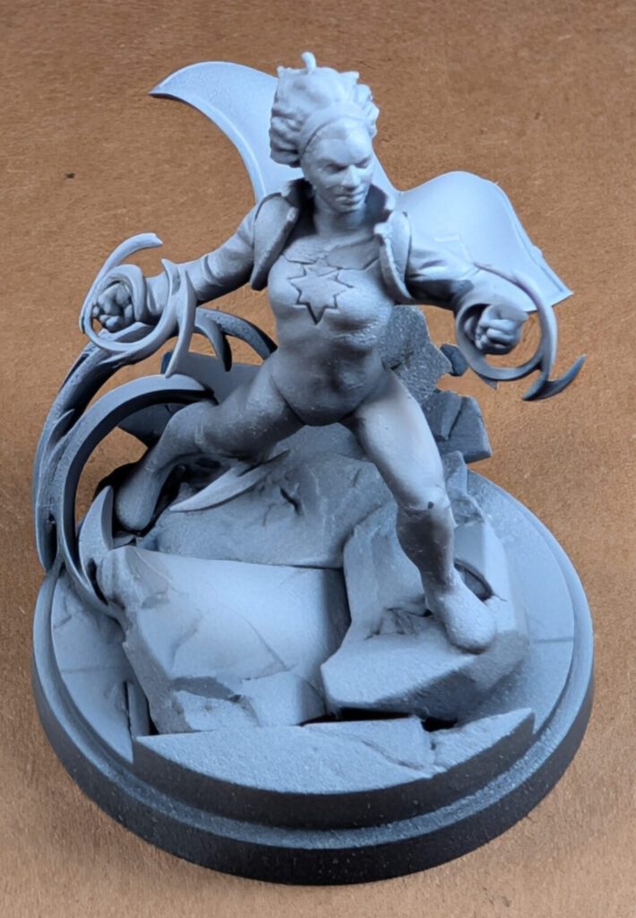Spectrum, like her counterpart Blue Marvel, sits on a 35mm base. Monica has the patented MCP tactical rock at her heels, with energy spirals emanating outwards from her hands and foot. She’s also very simple to put together with everything fitting pretty much exactly how you’d expect. The biggest heads up I’d give is that I think she’s easier to assemble if you glue her rocks onto the base first before putting her on it. Her back foot actually slips through a hole in the rocks to contact the base directly, meaning it’s a lot easier to glue her down after the rocks are in place.