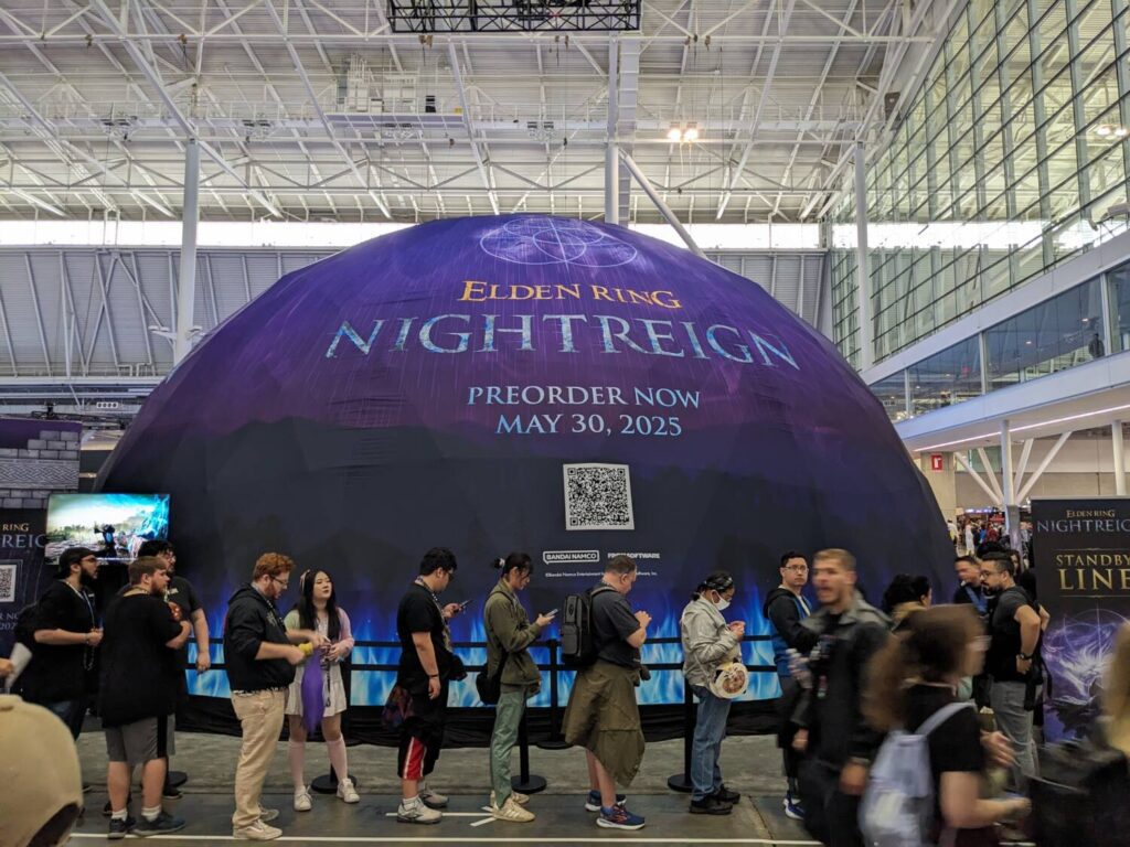At the show, we started with a heavy dose of demos on the main show floor, with new action from the likes of Bandai Namco, Atari, Devolver Digital, and Retroware. (Bandai Namco featured the new Elden Ring standalone co-op adventure Nightreign). No matter where you looked, there was a demo station calling the name of either me or my son every few minutes. Puzzle games, adventure games, fantasy spectacles, twin-stick action games. Lots of new console games. More high-end PC games. Miniature arcade cabinet games. Games that were appropriate for kids…and games that definitely were not.