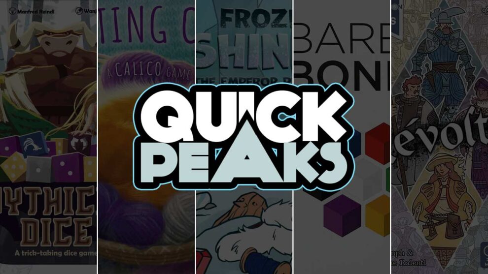 Mythical Dice, originally published in 2016 as Mino Dice and given a new coat of paint by IELLO and Playte for a 2025 re-release, is Skull King with dice. You’ve still got the First Mate, the Mermaids, the Skull King, and a bunch of number cards, all represented here by dice with unique faces based on the level of each character. Scoring is still the same, with tricks equal to the round number…so, in the first round, there’s only one trick to be had, and bidding nil scores points equal to the round number times 10. The Skull King here is a Minotaur, the First Mate is a Griffin and the Mermaid is…well, the Mermaids are still Mermaids. (I don’t get it, either.)