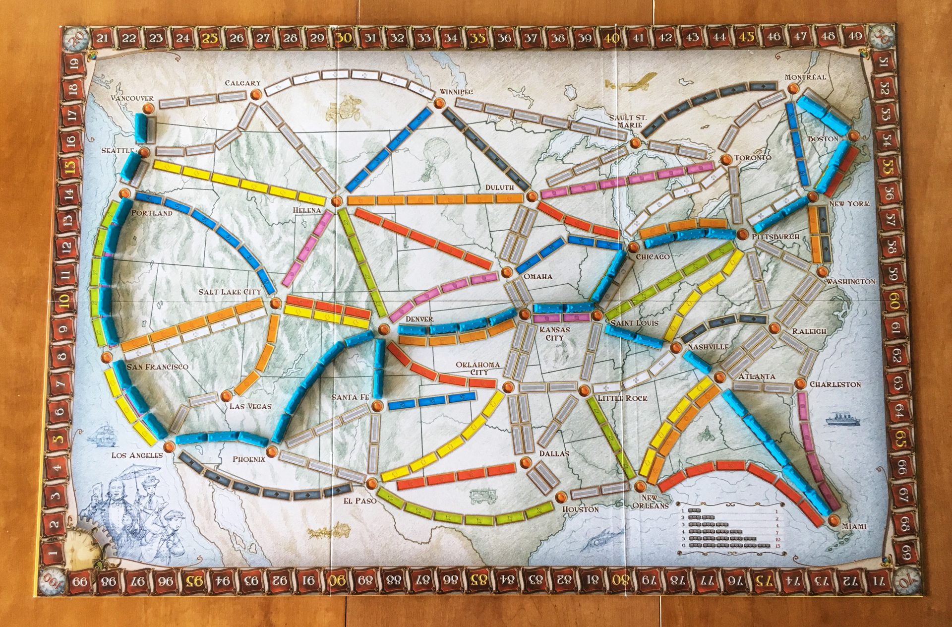 If you want a game that will exercise your strategic thinking, play a game of the Mega variant (lots more tickets with some seriously long routes) on the American board with five players. It will not take long before you and two other players are vying for the same territory. This can be especially true if more than one of you has tickets going into Las Vegas.