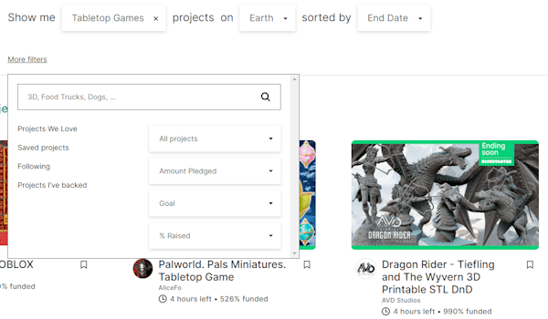 The problem is that when you select Tabletop Games, you are shown a lot of things. These range from board games to role-playing games to miniature or terrain collections (or even just the STL files for them) to … well, you get the idea.