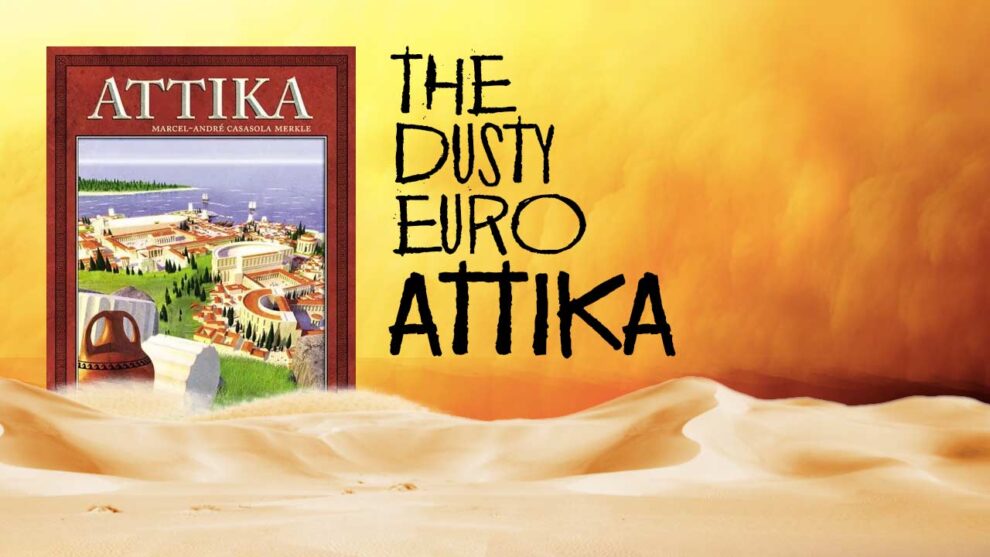 Attika was published in 2003 by Hans im Glück and Rio Grande Games (the version that I own). The game was designed by Marcel-André Casasola Merkle who is known for his other games such as Pyramid of Pengqueen, Santa Cruz, and Taluva and less well known for the very obscure Attribut 2 which I only mention here because he co-authored it with Uwe Rosenberg, one of my all time favorite designers and the focus of my Ave Uwe series of reviews.