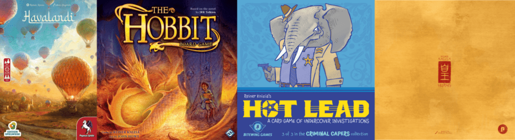 The Hobbit – Knizia has designed many games around Tolkien’s Middle Earth saga, including four games based on Bilbo Baggins’ adventures in The Hobbit. We’re flagging 2010’s The Hobbit as the loveliest of the four, coming as it did 2 years before Peter Jackson’s Hobbit film trilogy started. A family-friendly mix of bidding and gems, there’s nary a film still to be seen.