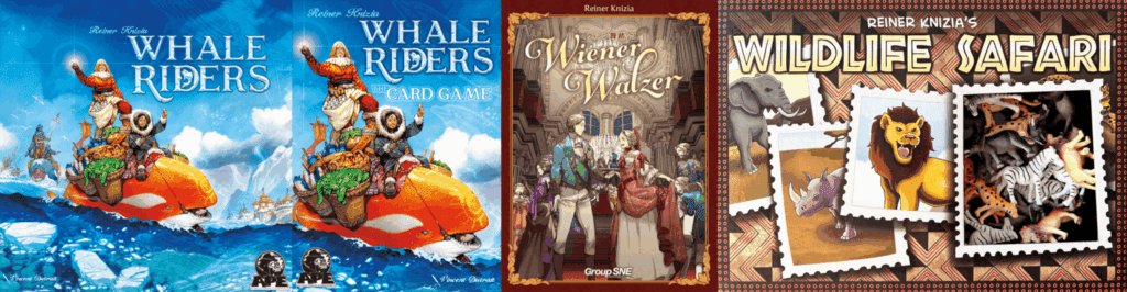 Whale Riders – The final collaboration before Knizia and publisher Grail Games parted ways for good (with the publisher’s claim of poor sales being countered by the designer’s claim of breach of contract). The split was a shame for Knizia fans, since it was a collaboration that resulted in ten gorgeous new and updated games, including Yellow & Yangtze, Circus Flohcati and the recent additions to the Medici family. In 2021’s Whale Riders, players travel by the titular whales, moving up and down an icy coast to collect resources and pearls. This original design was released with sister game Whale Riders: The Card Game, which is actually an updated version of 2000’s Trendy.