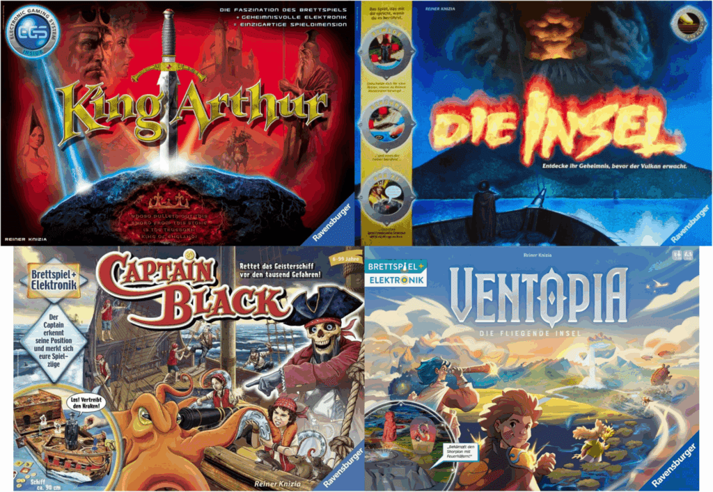 The move to incorporate technology into tabletop games is, according to Knizia, a logical one. “We live in a world of electronics,” he told Leigh Alexander at Game Developer, “it’s just there, it gives a better user experience and better features, so why would that not naturally go into our games as well?” More hybrid games followed King Arthur including Die Insel (‘The Island’) in 2005 and Captain Black in 2015. Only last month at the 2025 Essen Spiel games fair Knizia announced the latest game in the series, Ventopia: Die fliegende Insel, whilst wearing welding goggles.