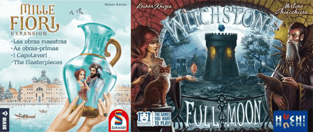 His more recent expansions include additions to newer designs, such as The Masterpieces for Mille Fiori, Full Moon for Witchstone and Nebular for Orbit. There are also the various reworked designs he’s released in the 2020s, such as Gazebo (2012’s Qin), SILOS (2008’s Municipium), Ichor (1993’s Tiku) and Merchants of Andromeda (2000’s Merchants of Amsterdam), which have all had small expansions released alongside them.