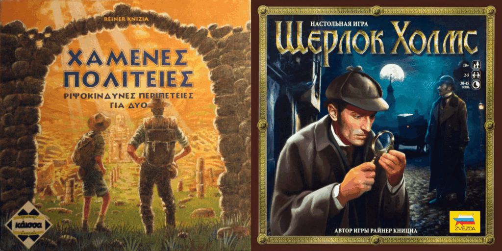 Of course, we could have selected a game with a non-English title. We chose Jäger und Sammler for the Letter ‘J’ after all, and we even bent the rules to have Euphrat & Tigris for the Letter ‘E’. We could have picked ΧΑΜΕΝΕΣ ΠοΛιτΕΙΕΣ, which starts with a letter shaped like an ‘X’ and is the 2001 Greek release of Lost Cities. But that ‘X’ is actually a ‘Ch’ sound and we covered Lost Cities back with Keltis in the Letter ‘K’. Шерлок Холмс is the Russian name for 2013’s Sherlock Holmes but it doesn’t start with the ‘X’ and it’s another ‘ch’ sound (in the cyrillic script its called ‘Kha’).