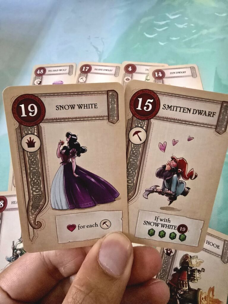 I want more! The card art is charming, drawing from everyone’s favorite fairy tales. Its simplicity makes it perfect to keep around for in-between games or something light to play at the pub with friends. The draft distribution keeps things fresh, even after multiple plays. Rarely did players end up with the same “set” or “engine” twice, resulting in a variety of paths to victory.
