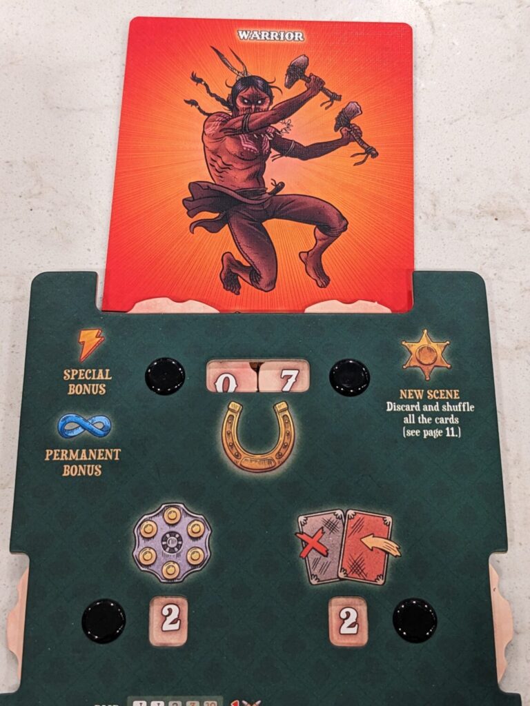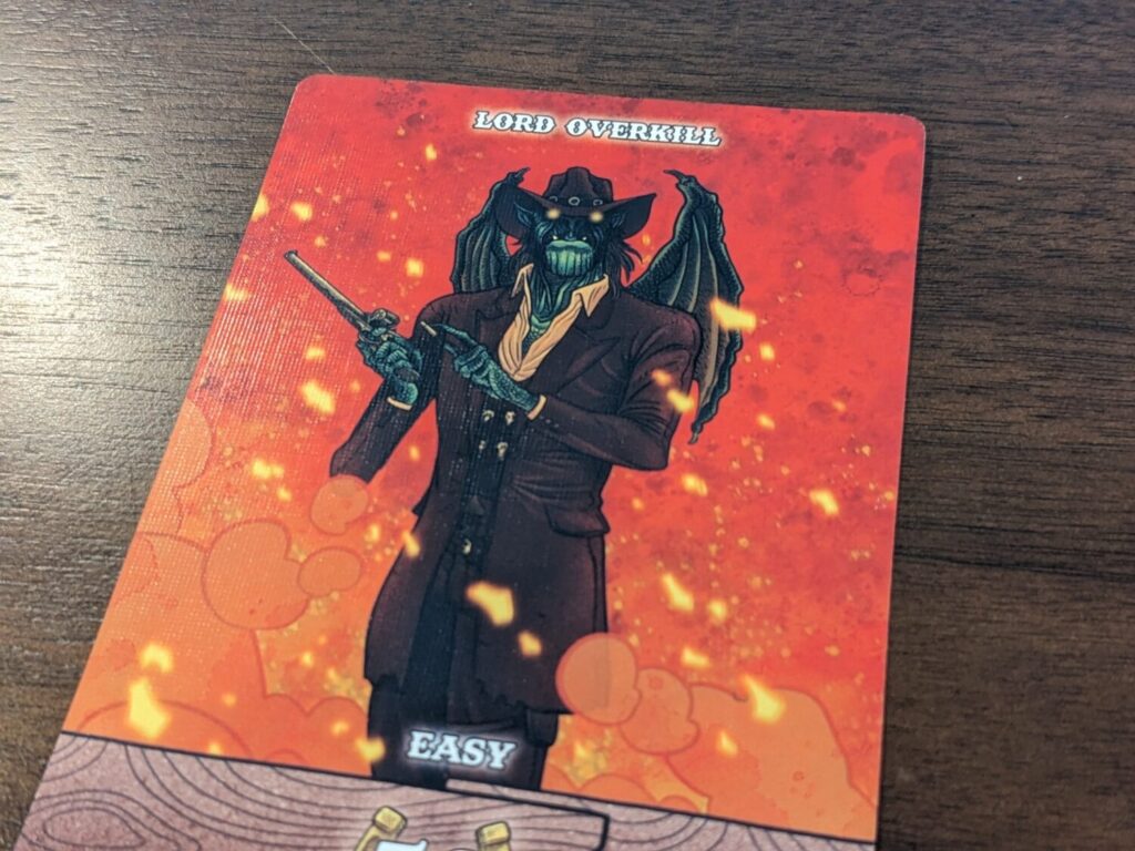 The dashboard is perfect and setting up the game is a breeze. I found that my main issue with this game was the constant need to reshuffle the entire deck. I’ve done eight plays of Ace of Spades—I played until I finally beat the 50-point boss on easy mode!!—and I’ve already reshuffled this deck about a hundred times, because you have to reset the deck after every encounter.