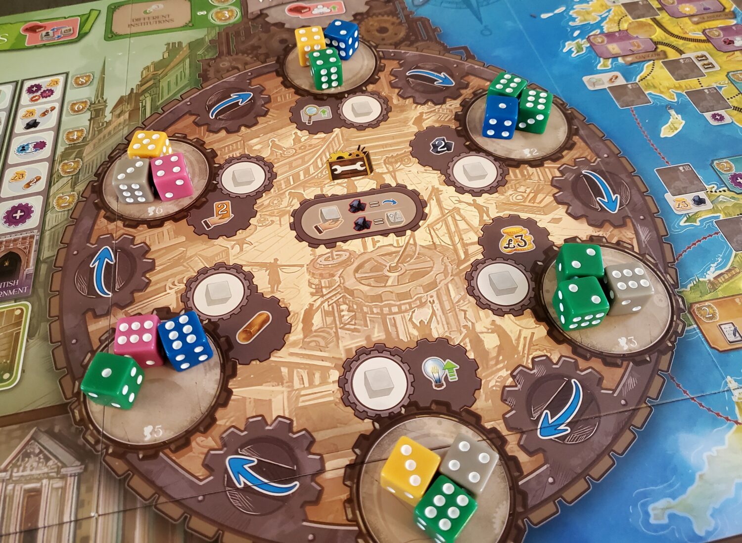 I wasn’t bored with the downtime, though. By mid-game, it’s best to have a Workshop turn in mind and at least an order of preference for your available Actions. As a result, mental gears are always turning, considering, and adjusting as players inexplicably take the one die you wanted or slip into an Action area to grab the bonus you had set your heart upon. Planning matters here, so the downtime is not wasted.