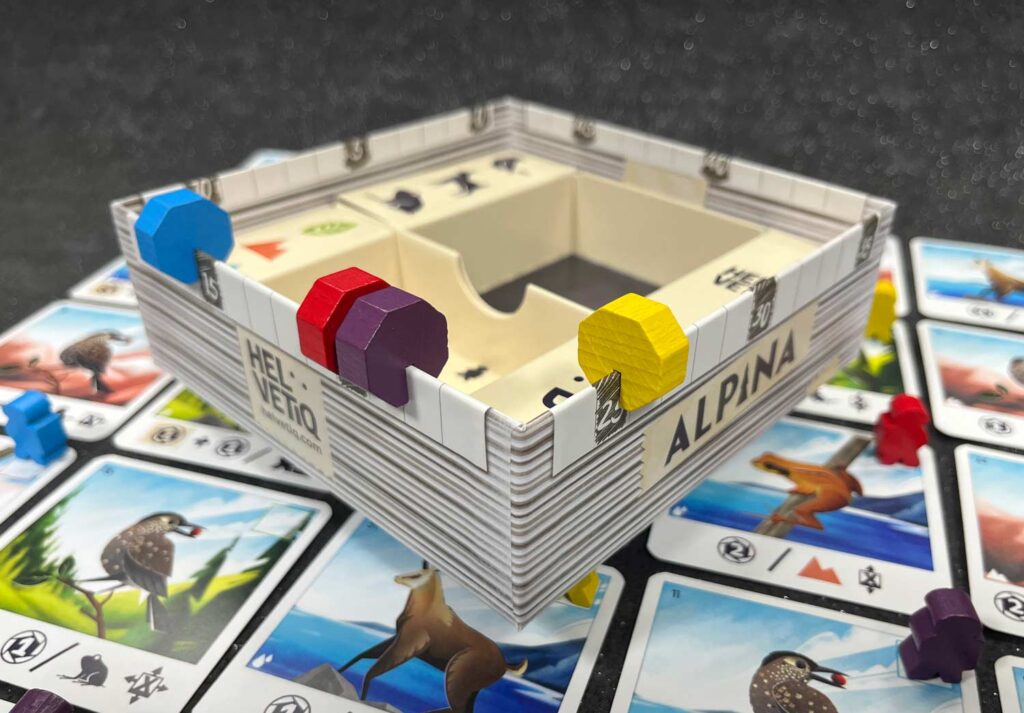 I’m a fan of small box games, especially ones that punch above their literal weight. In Alpina, from HELVETIQ, players cooperatively build a tableau in the Swiss Alps, and earn points along the way. Let me tell you about Alpina!