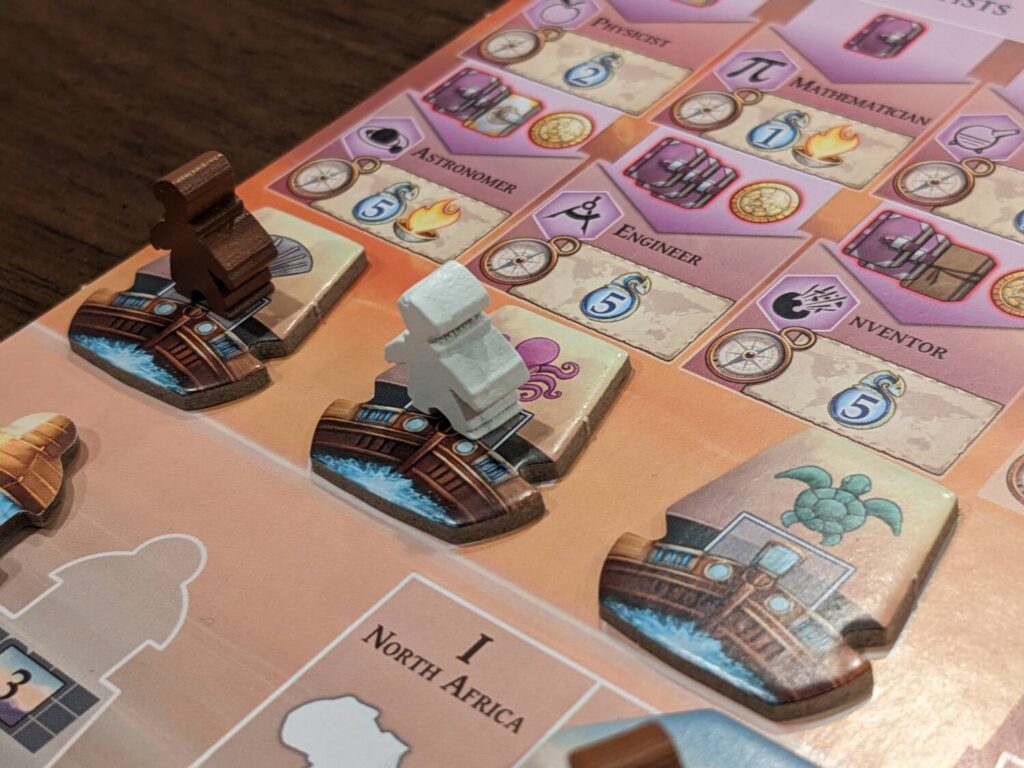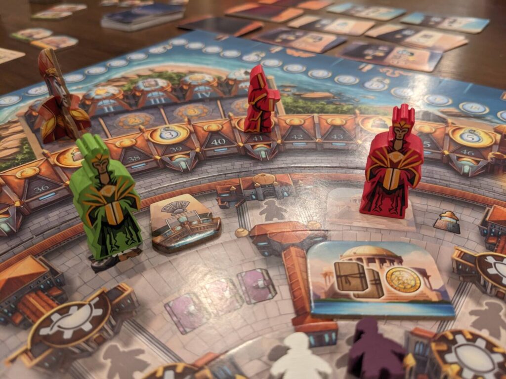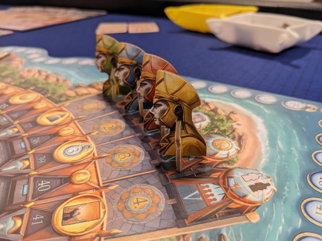 Solo was a great way to learn the game, but it’s a high score challenge that doesn’t really illustrate the struggles a player might face at higher player counts when kings get in the way. With solo, two king tokens each block a single space on the rondel each round, so it’s easy to plan around where those tokens will be as a player takes their turn. I would not recommend Atlantis Exodus to a player whose only intention is to play the game solo.
