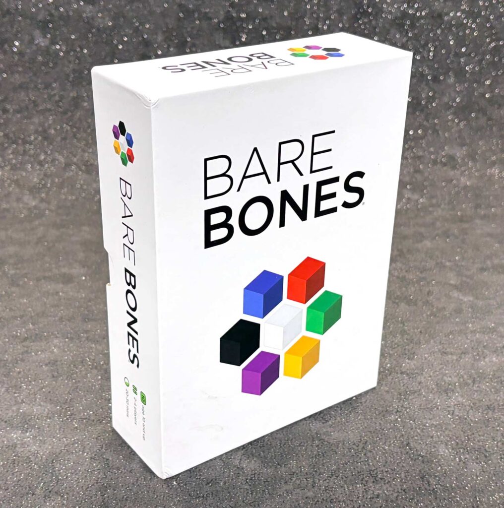 Even though the tagline at the top of this review says, ‘Bare” in production, but not in gameplay’, Bare Bones might be better called “Spartan in production”. There’s no artwork to speak of, but the graphic design in this game is excellent. The cards and rulebook are laid out with great attention to detail, with the text and colors chosen with care. Text on the cards, and the numbers on the dice are easy to read, even from across the table. Bare Bones’s packaging likely won’t win any awards, but you’ll also never hear anyone complaining about it either.