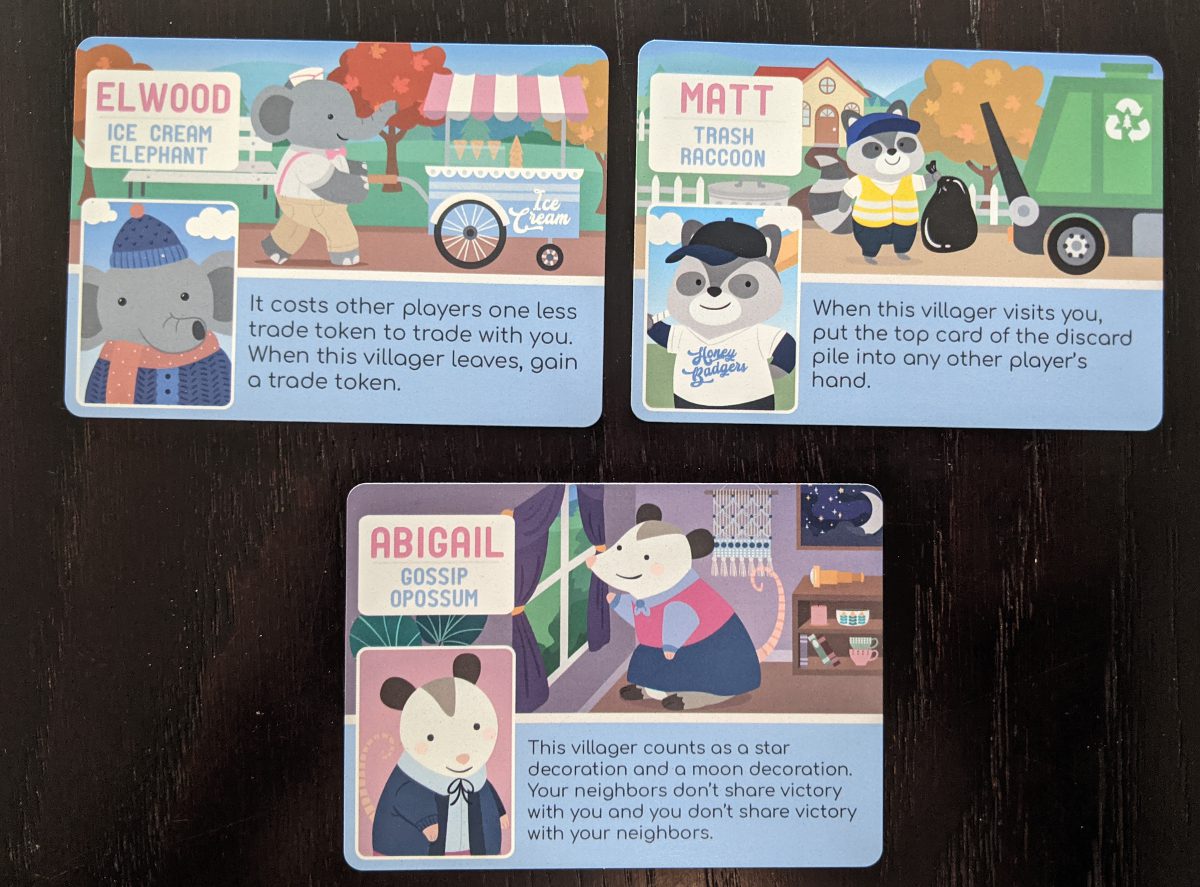 I know that sounds completely off, considering Abigail is the least intimidating name on the planet, but underestimating this opossum is a fatal mistake. If she visits you, she counts as one extra decoration of both types and grants you the power to win alone.