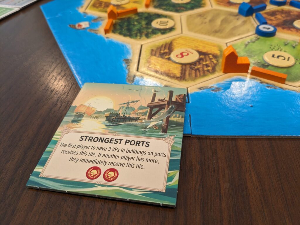 The Friendly Robber is essentially a formal rule that says players can’t rob a person with only two victory points. Harbors of CATAN adds a tile similar to Longest Road and Largest Army that rewards building on port locations. We added Harbors of CATAN to one game and it was interesting to see how that inspired players to start the game by building on a port, especially one located next to a “red number” (a six or an eight) that also happened to be on a port, so I think that is always worth adding to a game of base CATAN.