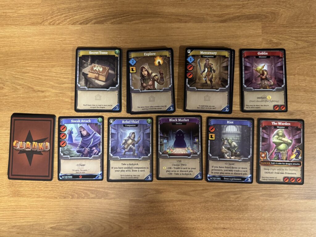Clank!: Catacombs is a deck-builder where each player starts with the same ten cards. Over the course of the game, players buy cards to add to their decks, hopefully building synergies that will allow them to navigate through the catacombs. The goal is to find an Artifact and return back to the Crypt space without filling up your Health Meter. Once all players have escaped the catacombs or have been knocked out, any players who managed to get an artifact who weren’t knocked out in the Depths (the deeper parts of the dungeon) get to tally up their points. Whoever has the most points wins.