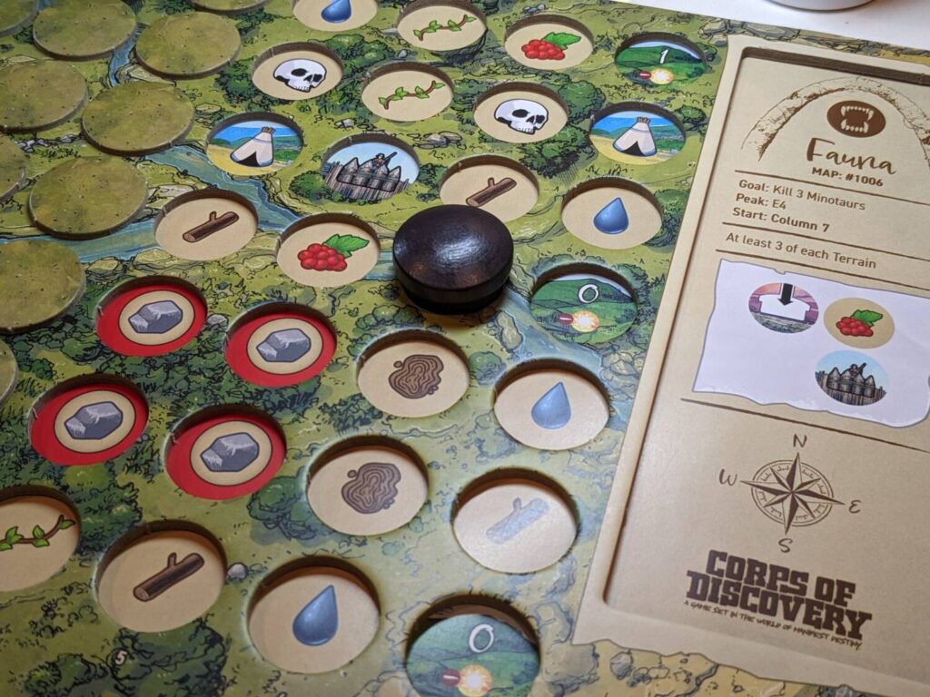 During that meeting with Jay, we did a demo of Corps of Discovery: A Game Set in the World of Manifest Destiny, designed by Cormier and Sen-Foong Lim. (Lim is Cormier’s partner on other designs, such as the underrated strategy game Belfort.)