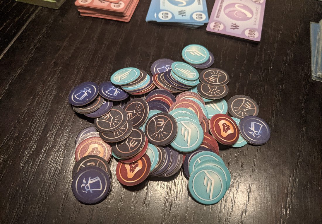 If you asked me which setting was inaccurate in modern board games, investments would be one of my first picks. I’m not saying games based on this setting are poorly designed or not enjoyable, but it’s clear that games like Stockpile had their mechanisms designed first, and the setting was merely a secondary concern. Many “stock market” games out there grossly misrepresent how investments work. This isn’t much of a problem for today’s game, Cryptocurrency.