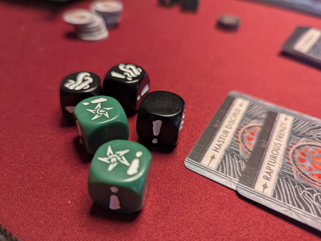 In Cthulhu: Death May Die, players take on the role of investigators, teaming up to defeat a gigantic and powerful “Elder One”–in the base game, either Hastur or the titular Cthulhu. Before you are able to do any damage to the Elder One, however, you’ll need to first disrupt a ritual, specific to the story in each of the 6 included episodes (which can be played in any order) and this is where teamwork becomes so vital.