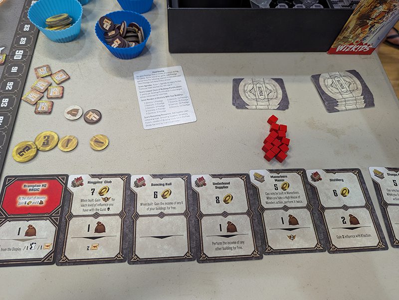 While this doesn’t sound too bad, it means every game starts out the same with little variation between sessions. This isn’t SETI or Terraforming Mars here with you scrutinizing your hand . Since you are collecting income constantly, you’ll find that gold becomes plentiful, therefore the choice of what building to build from your hand becomes rather moot as you merely place down a building for the sake of placing down the building.