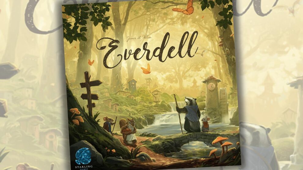Everdell is a breathtakingly beautiful game illustrated by Andrew Bosley and designed by James A. Wilson (and published by Starling Games). Typically, I would credit the designer first, but in this case I think that Andrew’s work in realizing the world of Everdell is equally instrumental in its success. We’ve reached a point in board gaming where it’s not enough to have a good game. The words “worker placement” fail to excite and require, at least for me, a theme, a world, and a hook to draw me in. Andrew Bosley provides that hook with his lavish illustrations of anthropomorphic forest creatures which instantly transport me back to my childhood of Redwall, The Wind in the Willows, and Watership Down.