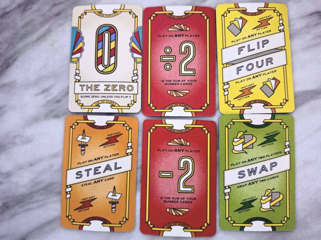 The production, though, definitely took a downturn. The cards are smaller, thinner, and cheaper than the ones in the original Flip 7. It’s a bit of a head-scratcher that, with such a successful game, they’d cheap out this much on the follow-up.