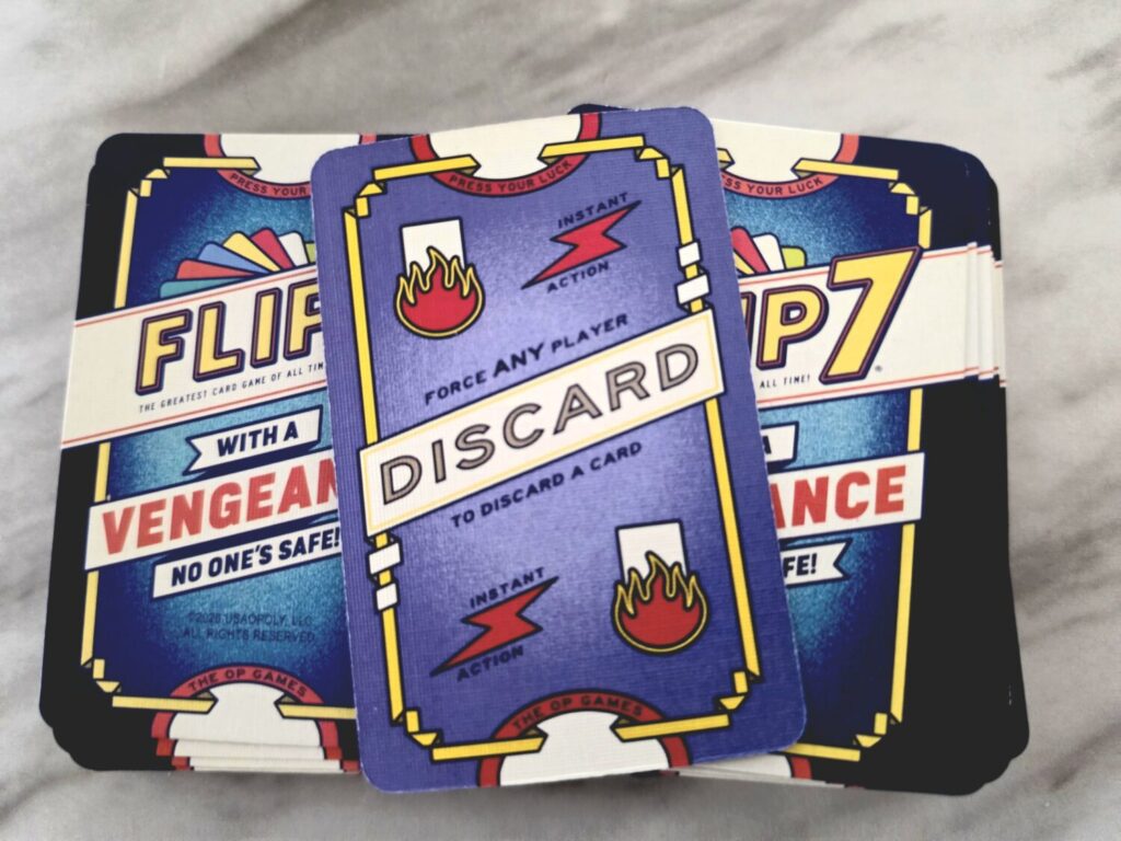 Overall, Flip 7: With a Vengeance is a decent spinoff of the original hit. The added punchiness creates more interaction and keeps players watching everyone’s hands. Because cards can still be played on people who’ve already stayed, the anxiety stays high until the round ends.