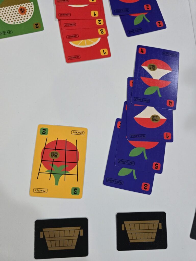 I also found that the threat of negative scoring didn’t really bite as much as I expected. It felt pretty manageable to avoid hoarding too many random fruit types, and the negative points ended up being minor for most players. But for a casual card game, that’s not necessarily a bad thing—it doesn’t need to be punishing.