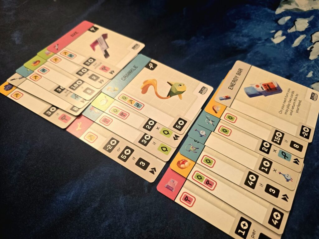 There are plenty of lamenting moments when a high-scoring line suddenly can’t be played, and it all gets wiped into the trash. Since it’s a drafting game, there’s some knowledge of what’s in the pool. However, there’s a dash of spice where all players draw back up whenever any player ships off their line. This can actually help others build further, but it can also be a lifeline when the selection gets slim and you might otherwise get stuck with a non-legal placement.