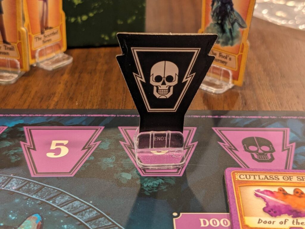 Jiangshi is the monster that got the shaft in this newest version of Horrified. Defeating it is somewhat easy, requiring as few as five items to build a “Coin Sword” before running after it and discarding purple items valued at nine or more strength. You don’t have to really plan around it, since you just have to find its lair, similar to the Yeti. (If both characters are in the current game, and there are three or more players, it feels like you are going to find the right lairs by the end of the first full round when all players have taken at least one turn, maybe their second at the latest).