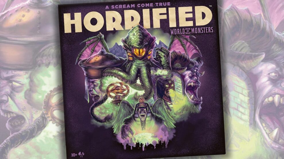 Wait…ANOTHER review of a game in the Horrified series? Yes, it’s true, and by now, we know our Horrified stuff around here—check out our reviews of the base game (Horrified: Universal Monsters), Horrified: American Monsters, and Horrified: Greek Monsters for the evidence, as well as an overview of how these games play if you are new to the series.