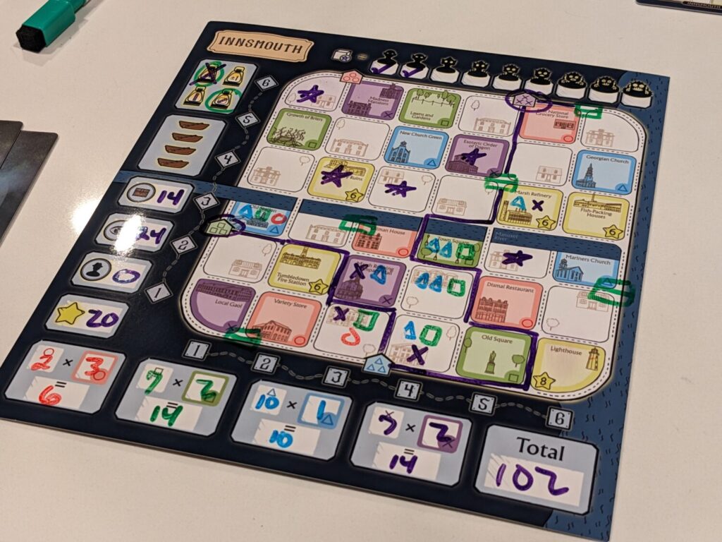 Innsmouth Travel Guide might be enough for most players who like roll-and-write games thanks to the sheer amount of variability included. With a tidy 45-minute playtime, there’s enough here for 5-10 plays, easy. (I’m spoiled by the En Route box of goodies…with a dozen maps, a half-dozen variants, and mountains of cards to shake up the system, En Route: Special Edition is all I will ever need!)