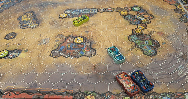 Trends aren’t new to board gaming. Generic fantasy, nature themes, vikings, ninjas, and anthropomorphic animals have littered the landscape for years. Post-apocalyptic racing is one of those popular niches, thanks largely to the enduring influence of Mad Max movies and games like Thunder Road: Vendetta. Joyride: Survival of the Fastest aims to compete in this crowded arena by being unconventional.