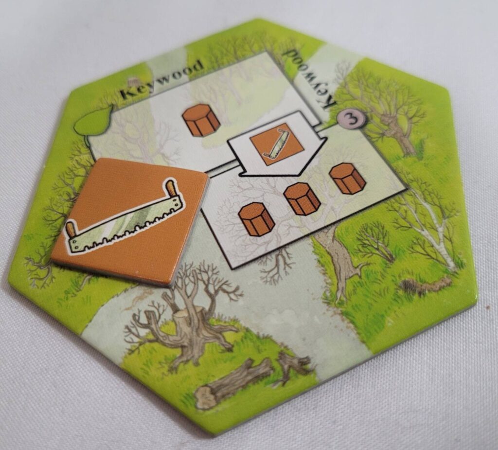 In order to flip over a tile, the resources involved in paying the cost to flip it must be present on the tile in question. One cannot simply place resources on a tile, though. They must be moved there by some means and that is where the other type of tiles, the resource moving kind, come into play. Resource moving tiles are illustrated with a silhouette of a horse towing a wagon. On this wagon is a number that represents the total number of movements that a player may perform if they choose to take this action.
